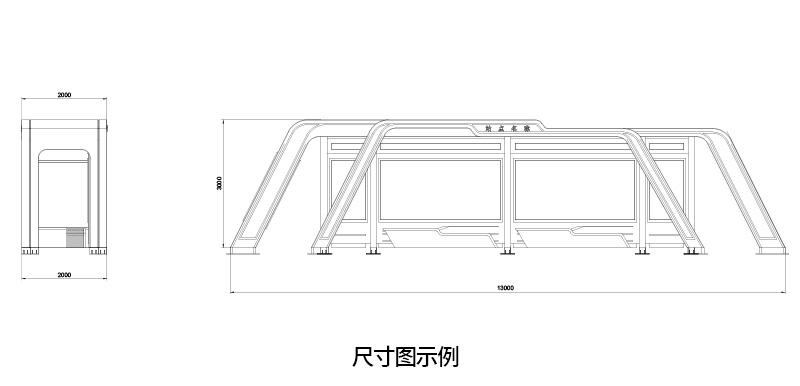 2.公交候车亭顶棚采用30*50*1.5mm镀锌管骨架,外包1.5mm镀锌板折边,3mm钢板激光切割焊接;